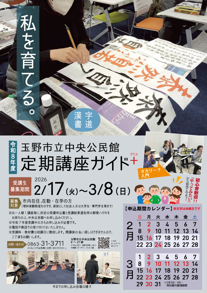 2月17日(火)〜 令和8年度 玉野市立中央公民館 定期講座 受講申込み受付を開始します